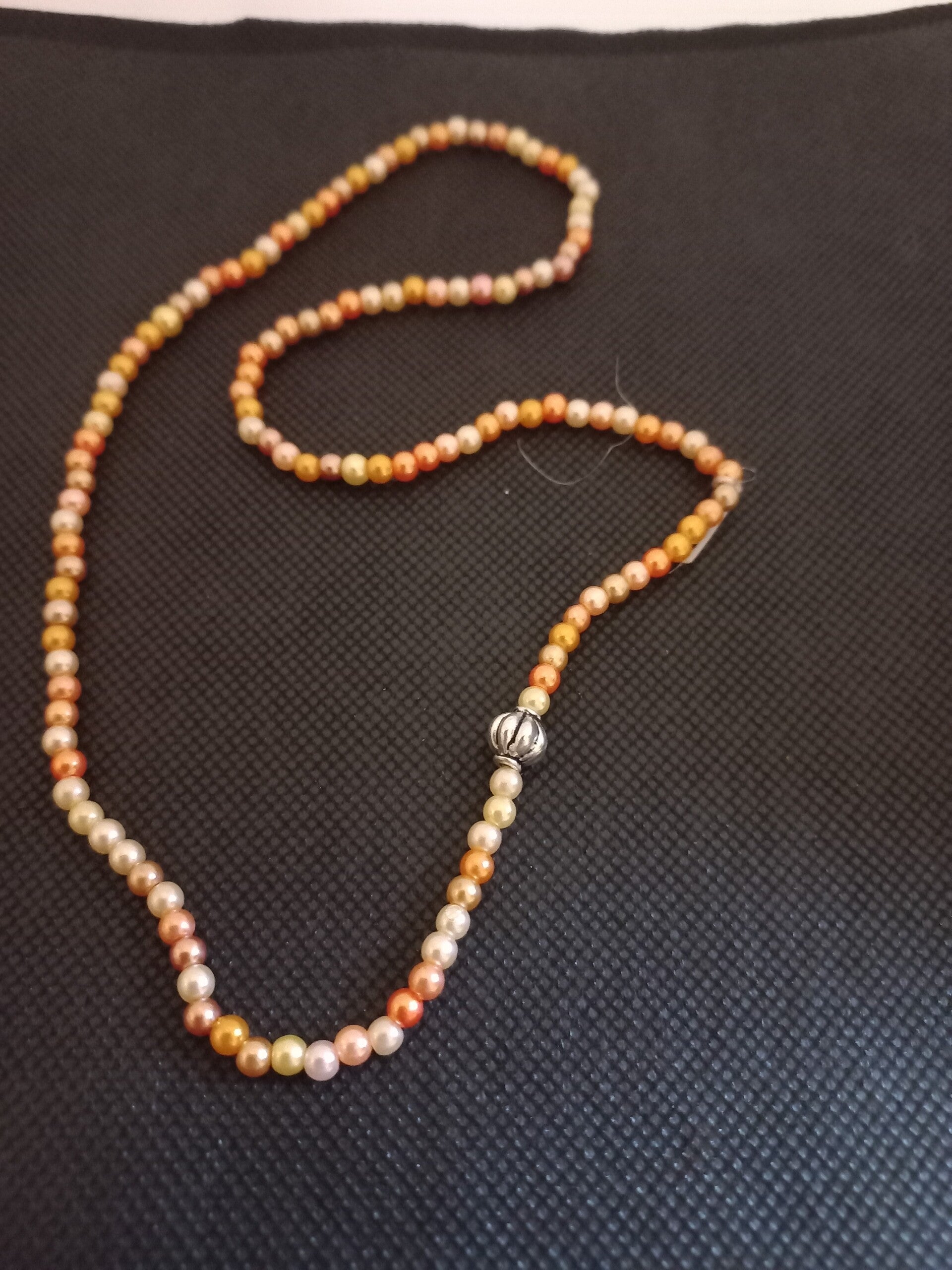 Collier en fil élastique perles synthétiques orange avec charms.